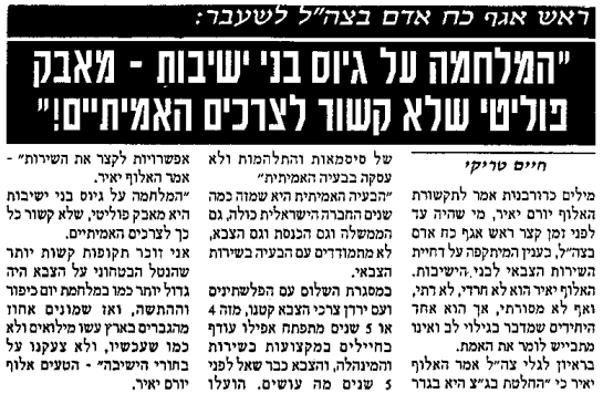 אילו היה מדובר בכל ציבור אחר לא היה עובד העיתונות מעיז להפוך את ה"ככל הנראה" שלו לקביעה ודאית, ועוד לזעוק זאת בהיסטריה בכותרת כתבתו. אך כאשר מדובר בציבור אשר הצלחת דרכו - הבאה לידי ביטוי בתנועת התשובה האדירה הפורחת בכל רחבי הארץ, מהוה איום על דרכו והשקפת עולמו של עובד זה, הרי כל הכפשה שיקרית מותרת, ובלבד לעוות את דמותו של הציבור הנאמן לתורת אלהי ישראל, ולשוות לו תדמית שלילית ככל האפשר.