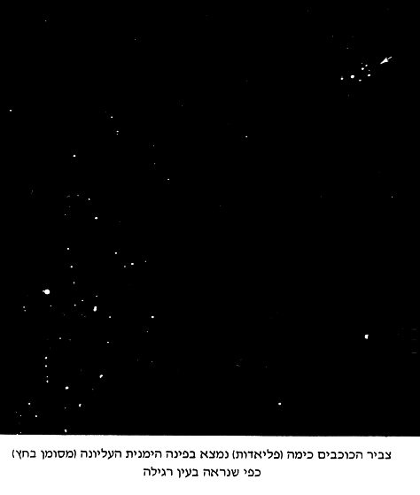 (פליאדות), והמרוחק מאיתנו בכשלש מאות שנות אור, העין מבחינה בששה כוכבים. העין החדה ביותר יכולה להבחין בתנאי ראות תקינים בכוכב שביעי ושמיני. ואכן כך סברו האסטרונומים במשך דורות רבים כי "כימה" מכילה שמונה כוכבים.