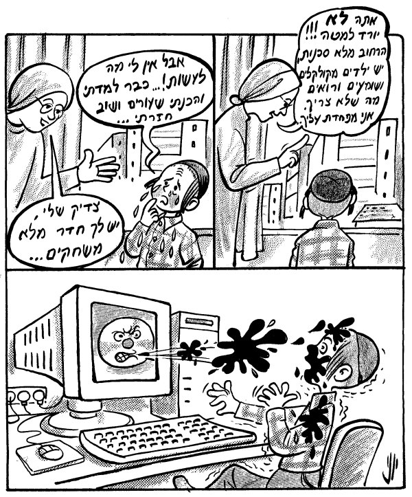 "עירנות מונעת אסון", כך אומרת הסיסמה, ואם היא נכונה בשאר התחומים, בנוגע לאינטרנט זה נכון פי מיליון. ולכן, אתה ואשתך צריכים לעשות ככל יכולתכם לפקח על הבנים והבנות ולבדוק ב–700 עיניים, היכן הם מבלים, מי החברים שלהם, להיכן הם הולכים, ומתי הם חוזרים, ואם יש בבית לאותו חבר או לאותה חברה מחשב, וכו' וכו'.